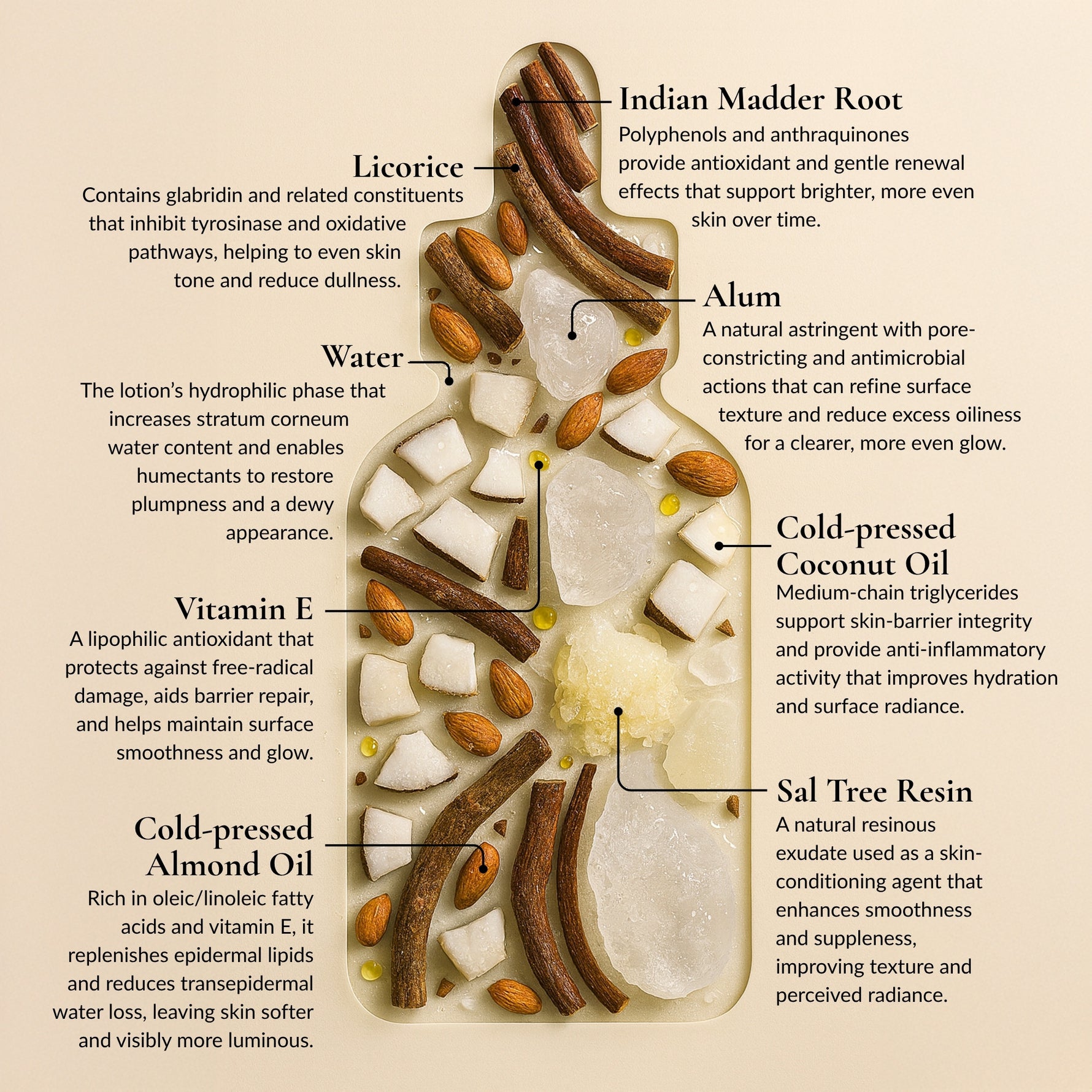 Unit price perA balanced oil-in-water lotion that refines texture and brightens tone without harsh actives. Licorice and madder root provide antioxidant and gentle tone-evening effects while tocopherol and natural resins restore barrier function for a dewy, renewed finish.